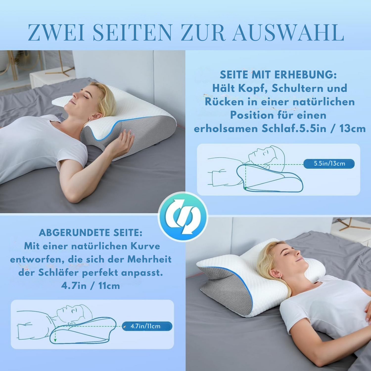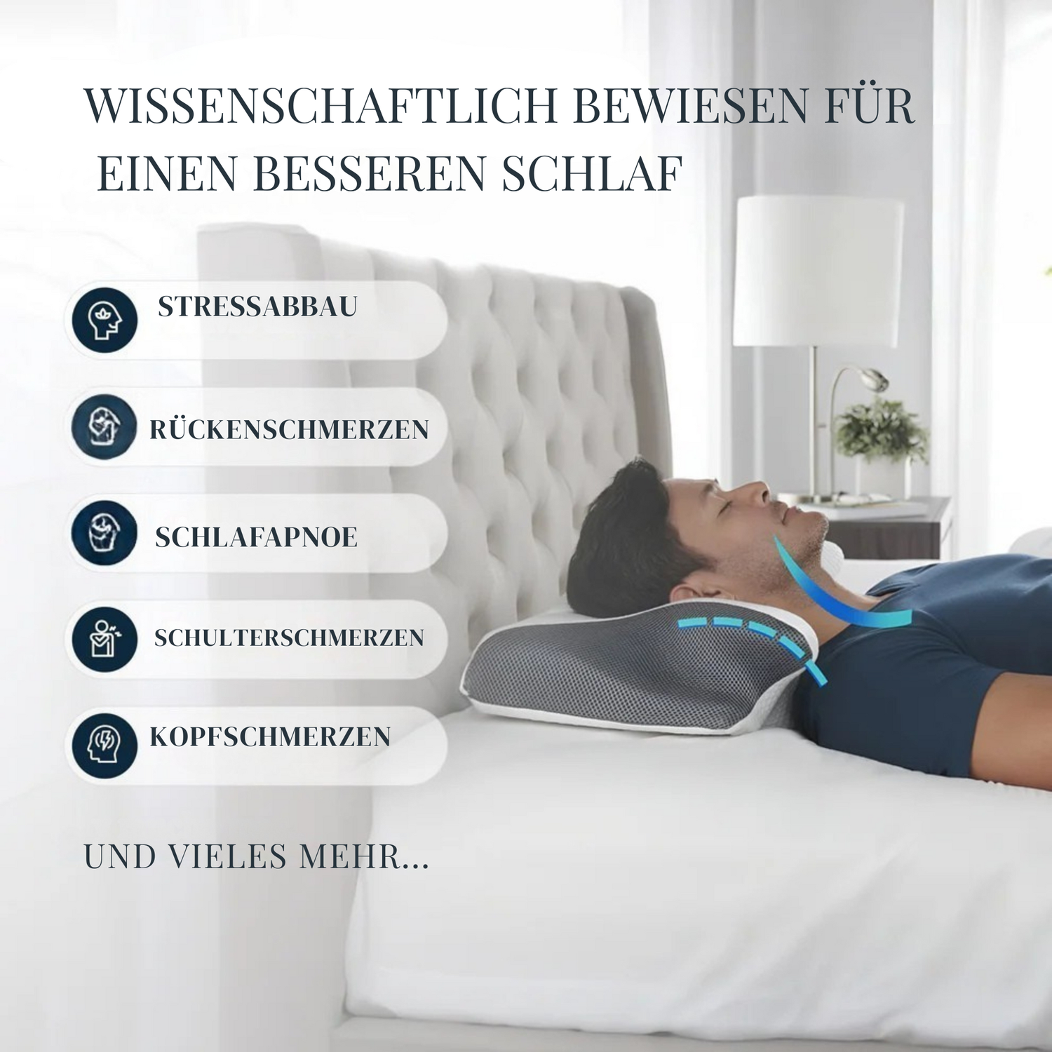 Dank seiner ergonomischen Form und des hochwertigen Memory-Schaums lindert es Stress, Rücken-, Nacken-, Schulter- und Kopfschmerzen – und hilft gleichzeitig bei Schlafapnoe und Verspannungen.